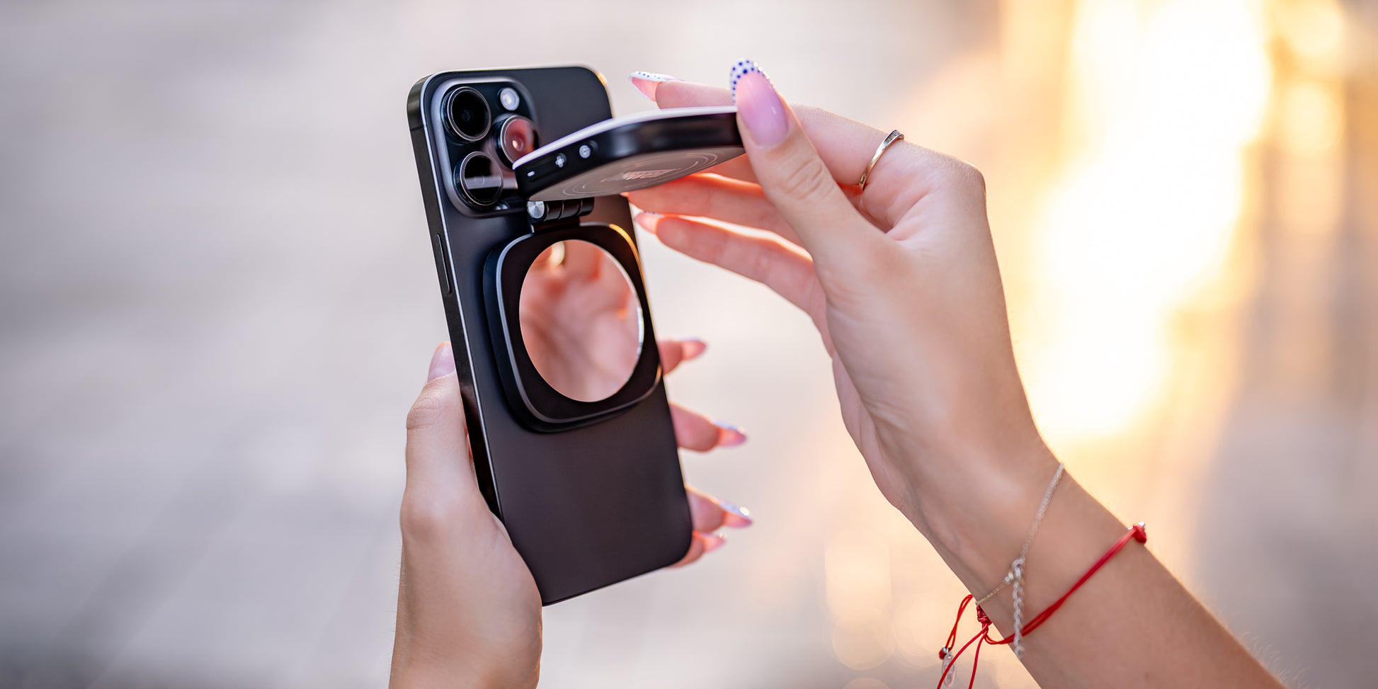 Obwohl die Newell Bella perfekt mit MagSafe-ausgestatteten Handys funktioniert, enden ihre Fähigkeiten nicht mit dem Apple-Ökosystem. Im Lieferumfang ist ein selbstklebender Magnetring enthalten, mit dem Sie die Leuchte auch an Android-Smartphones oder iPhones ohne MagSafe verwenden können. Kleben Sie den Ring einfach auf Ihre Tasche oder Ihr Etui, um eine ebenso sichere und bequeme Befestigung zu gewährleisten. Egal, welche Art von Telefon Sie verwenden, mit der Newell Bella Leuchte haben Sie in jeder Situation Zugang zu solidem Fülllicht.